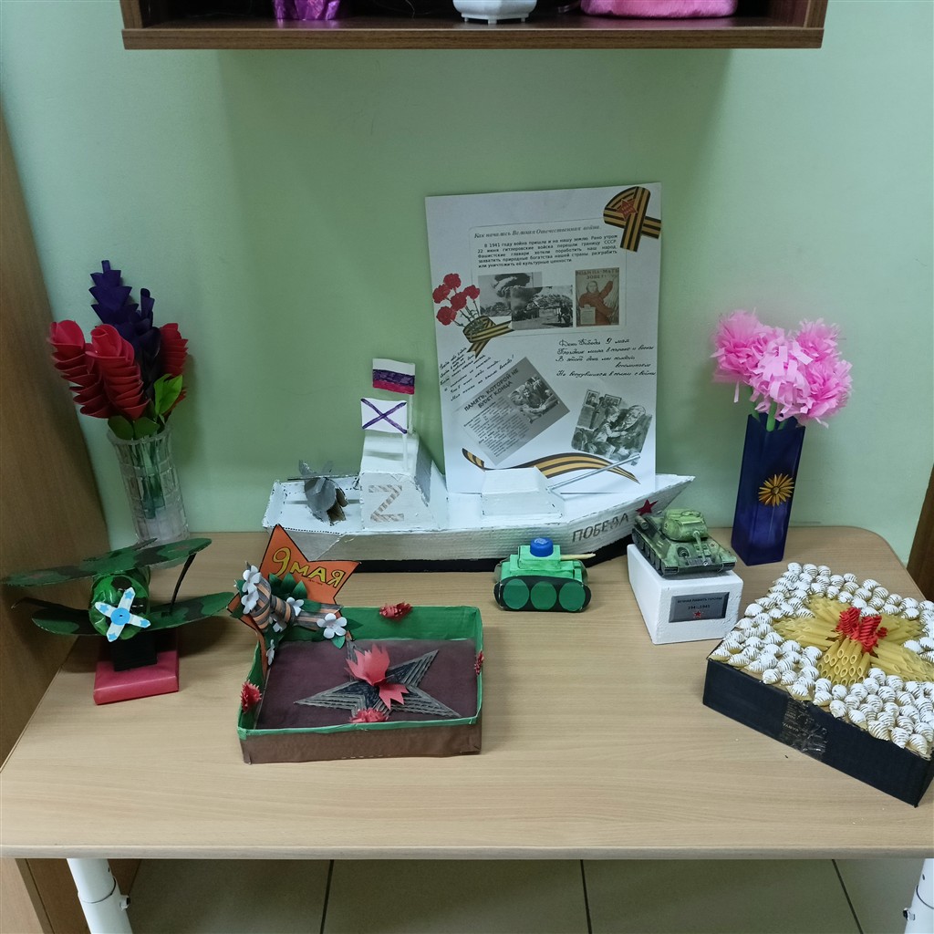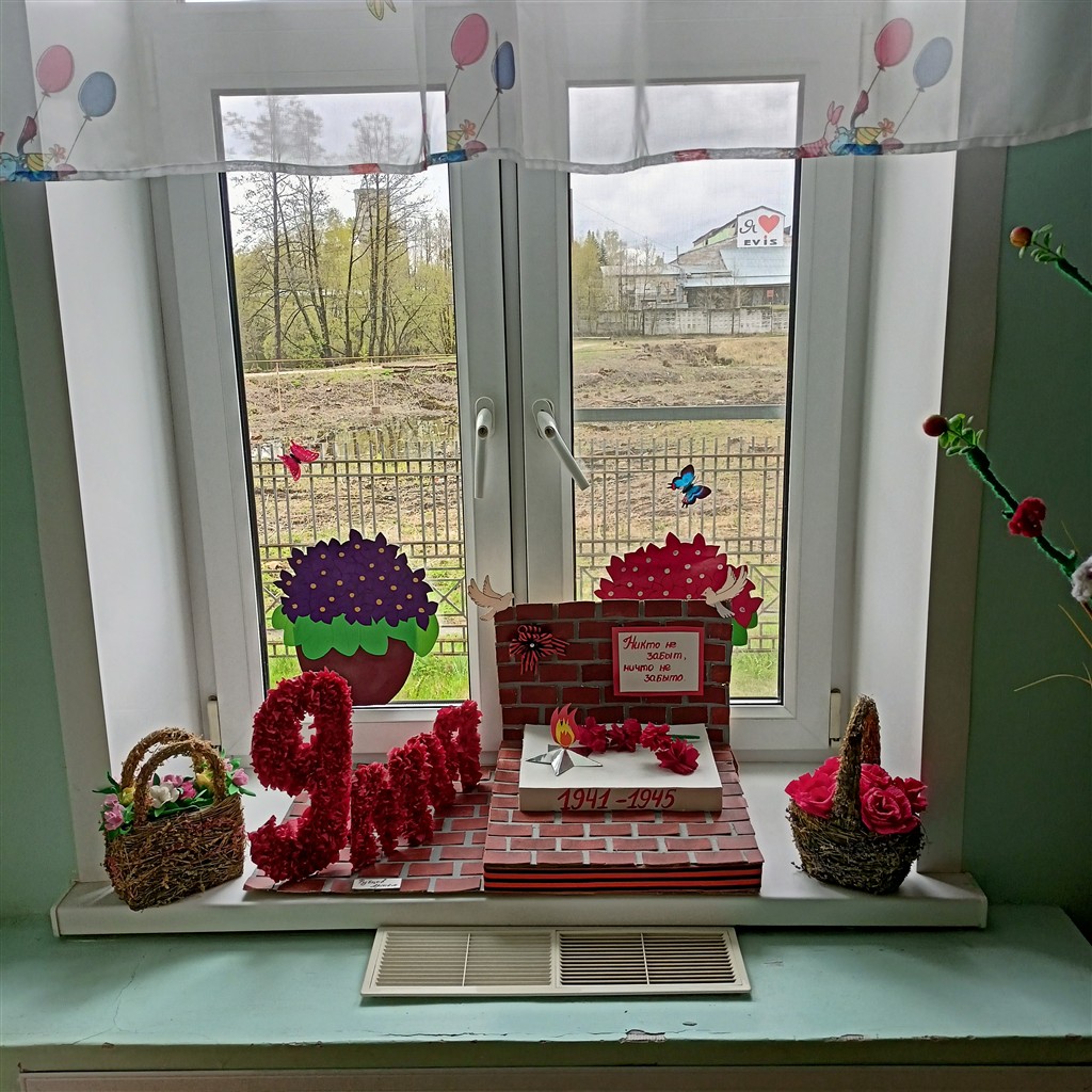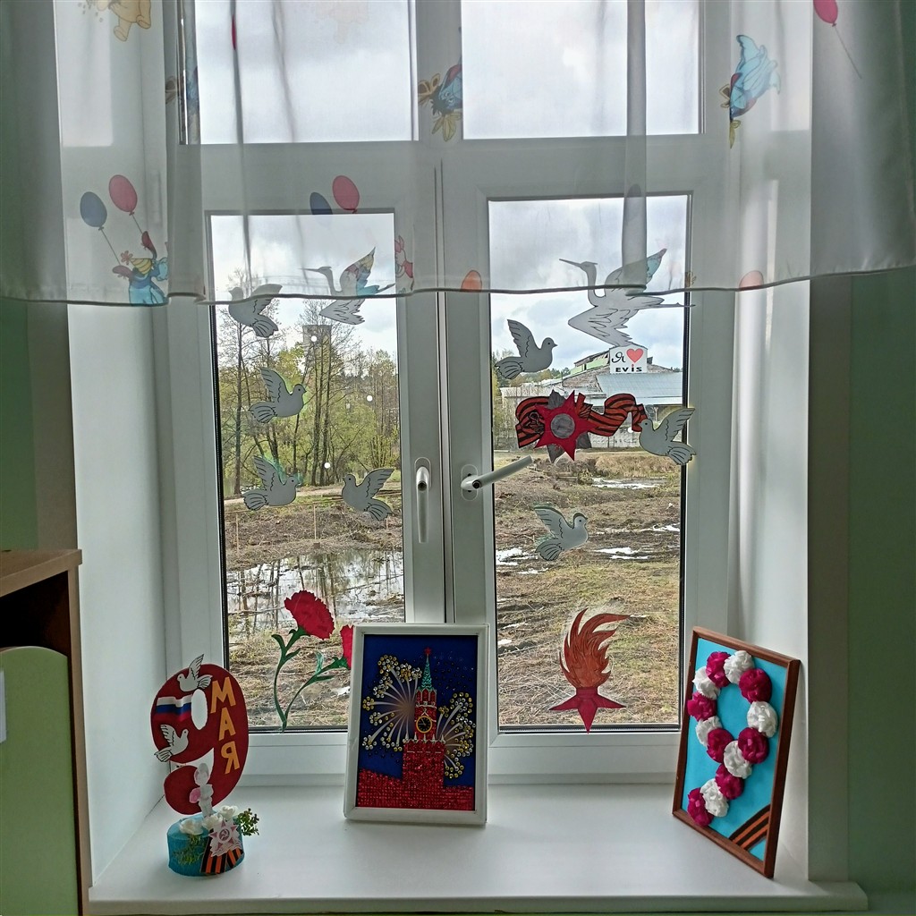 День Победы — великий праздник! В этом, юбилейном, году подготовка к нему идёт с особым размахом. В нашем детском саду педагоги оформили тематические выставки, украсили окна к Дню Победы, с детьми подготовили поздравительные открытки ветеранам, родители нарисовали плакаты, сделали поделки. Данными мероприятиями воспитываются и укрепляются чувства патриотизма, любви к Родине и гордости за подвиг соотечественников в тяжелые годы войны. Нельзя забывать свою историю. Подрастающее поколение должно помнить и знать о мужестве и героизме советского народа, проявленных во время Великой Отечественной войны. Эти знания должны быть заложены в самом раннем детстве, пронесены через всю жизнь и передаться потомкам.