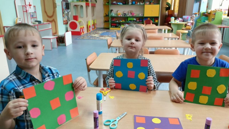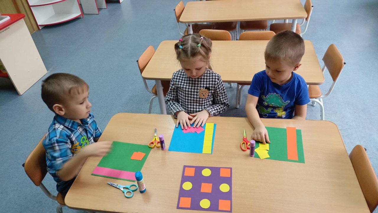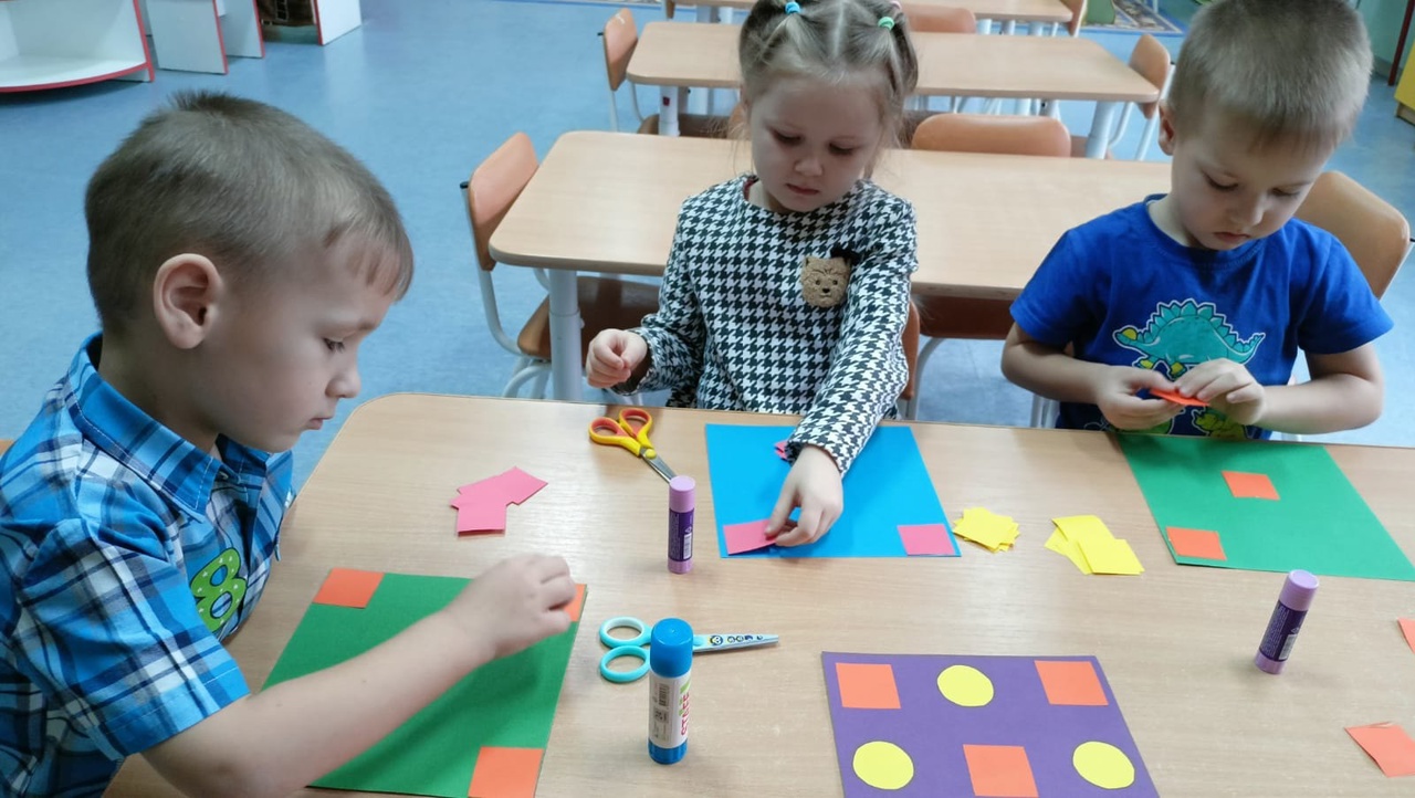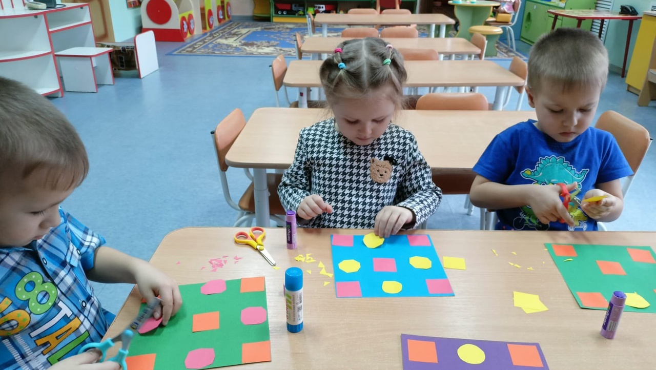 Группа Бусинки. Аппликация:"Укрась салфетку". Цель: учить детей составлять узор на квадрате, заполняя элементами середину и углы.